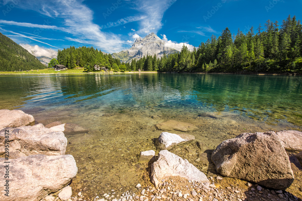 Arnisee with Swiss Alps. Arnisee is a reservoir in the Canton of Uri, Switzerland, Europe