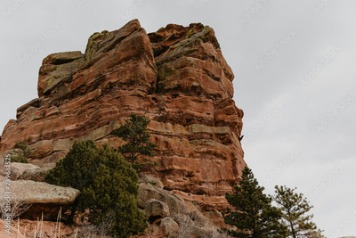 Beautiful Scenic View of Tall Red Rock Mountain Peak in USA Natural Southwest State Park