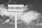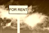 For Rent real estate sign against nice blue sky background with clouds.