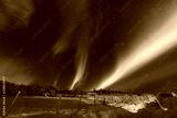The polar arctic Northern lights aurora borealis sky star in Scandinavia Norway Tromso in the farm winter forest snow mountains