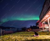 The polar arctic Northern lights aurora borealis sky star in Scandinavia Norway Tromso in the farm winter forest