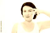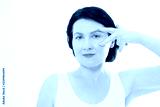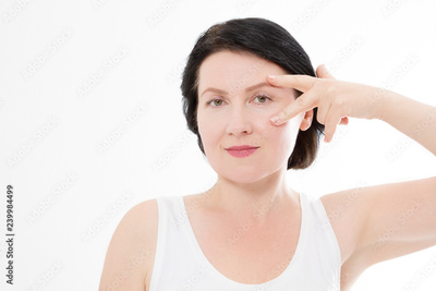 Macro Woman face with wrinkles near eyes. Collagen and face injections concept. Menopause. Cropped image. Copy space and mock up. Plastic surgery