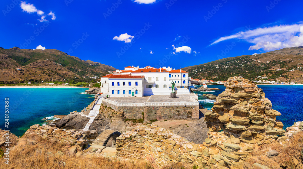 scenic Andros island - view of Chora town. Cyclades, Greece