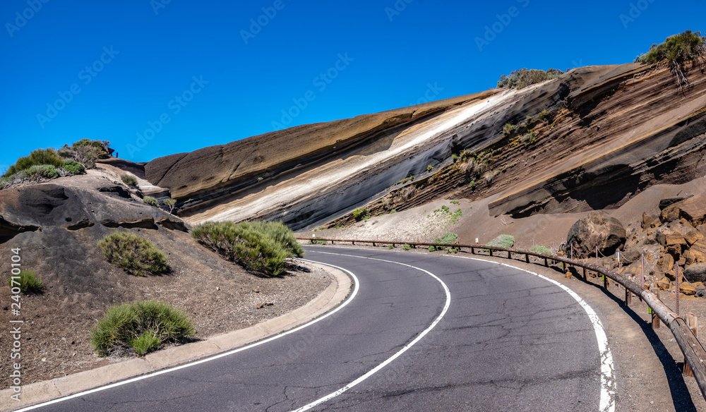 road in the Teide National Park on Tenerife leading through the volcanic gorge