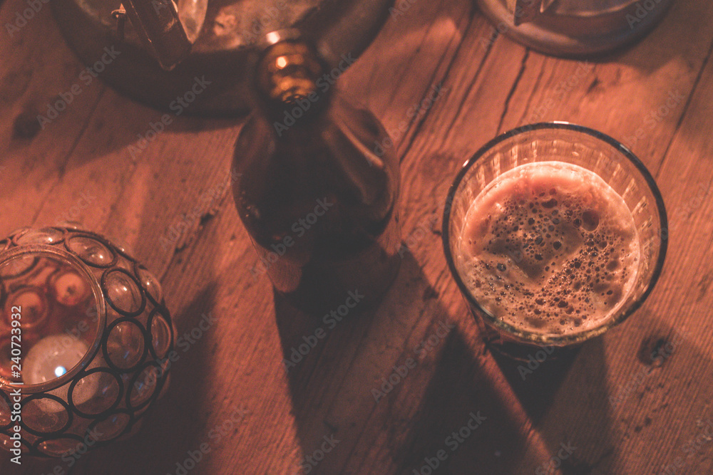 A glass of delicious winter beverage in a late winter after noon.