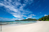 Beautiful beach. View of nice tropical beach with palms around. Holiday and vacation concept. Tropical beach.