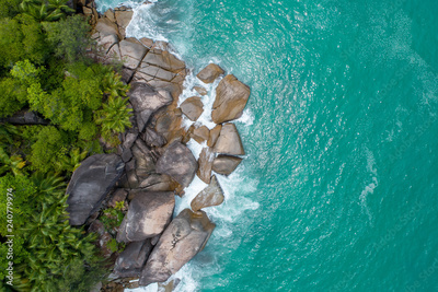 Aerial view of beautiful island at Seychelles in the Indian Ocean. Top view from drone