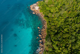 Aerial view of beautiful island at Seychelles in the Indian Ocean. Top view from drone