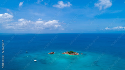 Aerial view of beautiful St. Pierre Island at Seychelles. Top view from drone