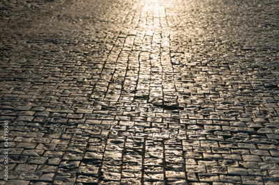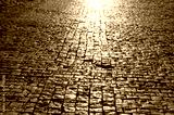 Abstract texture, background of sunlit road cobbles