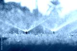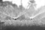 Automatic lawn sprinkler watering green grass. Sprinkler with automatic system. Garden irrigation system watering lawn. Water saving or water conservation from sprinkler system with adjustable head.