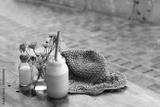 A jar of fresh yellow pineapple and mango smoothie with a bamboo straw on the table with a straw hat and a vase of pink flowers near it. Summer concept. No more plastic straw concept