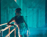 Fitness strength training workout concept background - muscular bodybuilder sexy sport girl doing exercises in gym