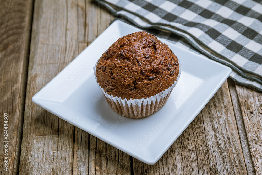 Chocolate muffin on a plate