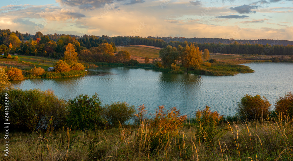 Village located by the lake, panorama.Drawsko Lake District,Poland