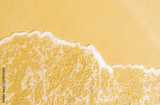 Golden sand at seaside. Sea water wave on the beach. Sand and sea water texture background.Summer vacation on tropical paradise beach concept. Ripple of water splash on sandy beach. Calm and tranquil.