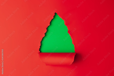 Christmas tree shape made with red and green paper. Minimal Christmas background. with copy space.