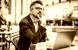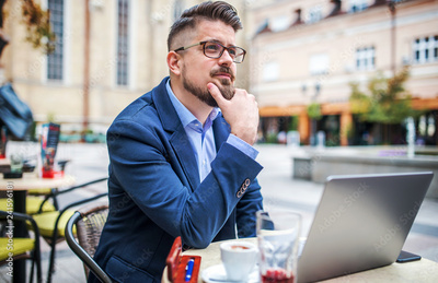 Business man on coffee break in a cafe. Business, education, lifestyle concept