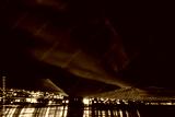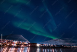The polar arctic Northern lights aurora borealis sky star in Norway Svalbard in Longyearbyen the moon mountains