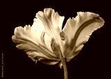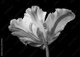 Beautiful monochrome blooming parrot tulip head against a black background.