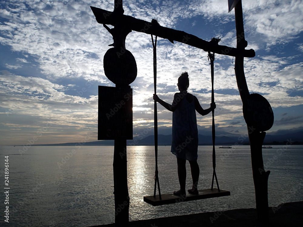 swing with girl on the beach at sunrise - Gili Air - Bali
