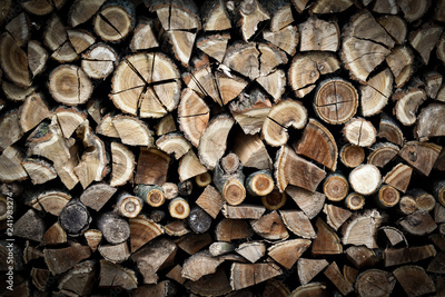 Chopped firewood background, Firewood stack for fire.