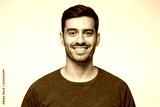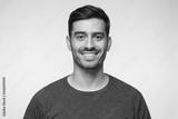 Close-up portrait of smiling handsome young man in casual t-shirt, isolated on gray background