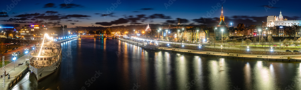 Szczecin,Poland-December 2018:Panoramic view of Szczecin (Stettin) City at night