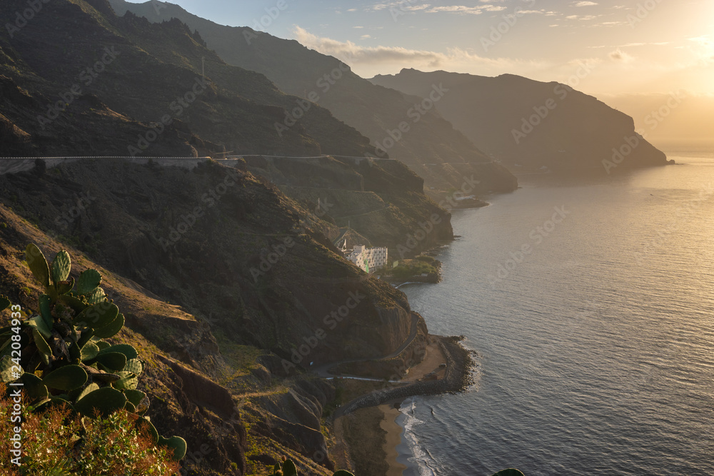 Sunrise over the ocean.Anaga Mountain . Tenerife, Canary Islands.