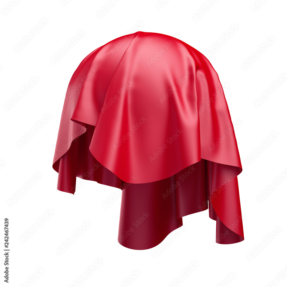 3d render, digital illustration, abstract folded cloth, soaring fabric, unveil, spherical red curtain, textile cover, isolated on white background