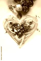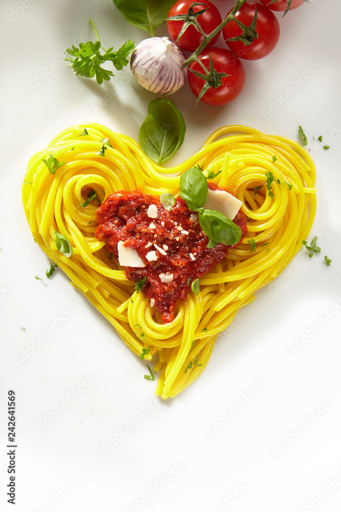 Decorative heart shaped spaghetti Bolognaise