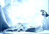 Winter life style background,cozy winter rest backdrop empty copy space.