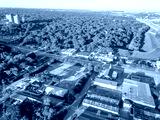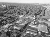 Top view industrial area near Kessler area located just south of downtown Dallas. Aerial view warehouse building next to nature Kessler Park