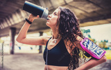 Jogging. Relaxing after fitness training outdoors. Fitness, sport, lifestyle concept