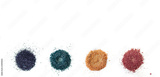 A set of color pigments in different shades, pigment powder close up, glitter eyeshadow / mica. Isolated on a white background, top view.