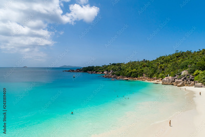 Aerial view of beautiful island at Seychelles in the Indian Ocean.Top view from drone