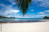 Beautiful beach. View of nice tropical beach with palms around. Holiday and vacation concept. Tropical beach.