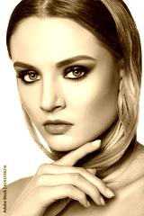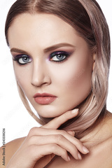 Beautiful Woman with Professional Makeup. Celebrate Style Eye Make-up, Perfect Eyebrows, Shine Skin. Bright Fashion Look