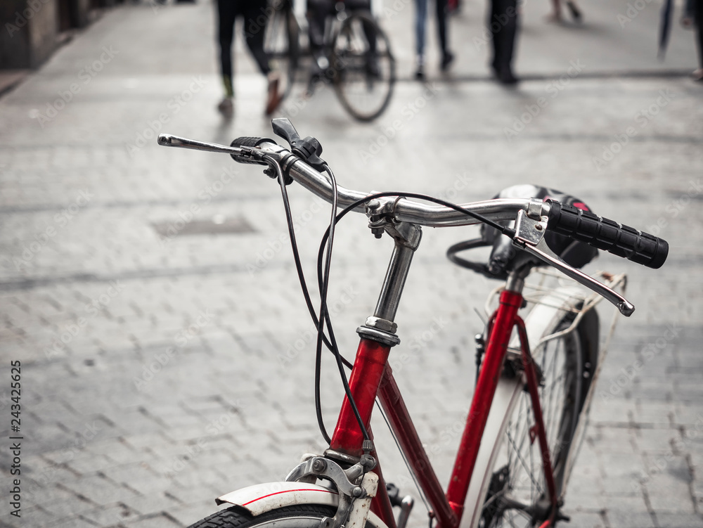 Bicycle on street with People walking city Travel ecology lifestyle friendly city