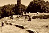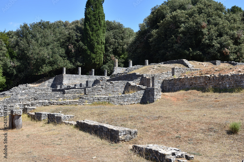 Ruins of a ancient Roman villa on the Brijuni (Brioni) island in Adriatic sea, near Pula town, Istria region, Croatia. Columns and ruined walls