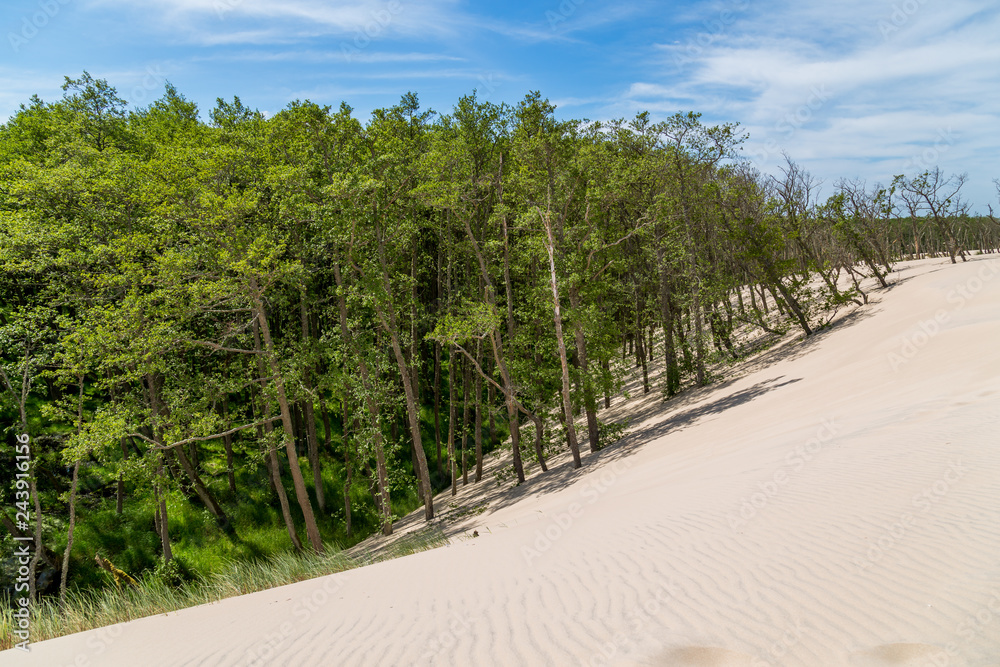 Ruchome wydmy w Słowińskim Parku Narodowym zasypujące las.