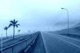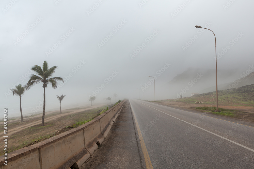 Coastal road near Salalah, Dhofar Province, Oman, during Khareef monsoon season