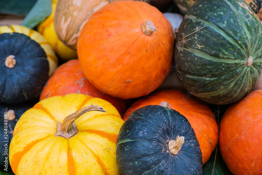 Many type of ripe orange pumpkin -Image.