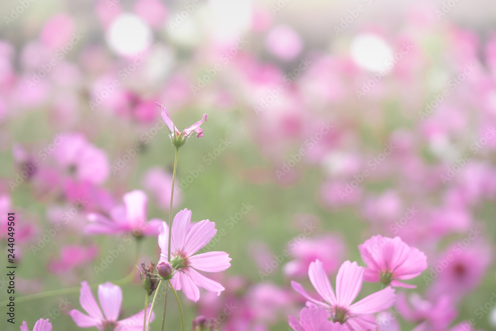 Pink cosmos flowers with in natural Cosmos field. Freshness and background concept.