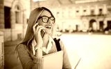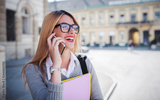 Business woman talking on a mobile phone outdoor. Business, education, lifestyle concept