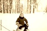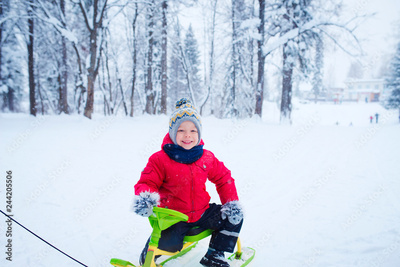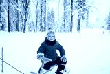 cute boy winter walk in forest