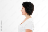 Profile portrait of middle age brunette hair asian woman isolated on white background . Beautiful woman model and skin care.Anti aging and copy space