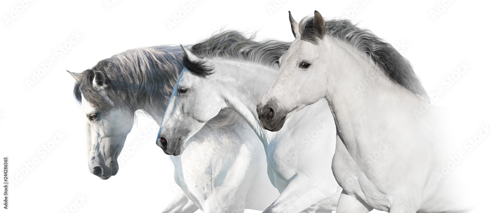 White horses portrait with long mane on white background. High key image