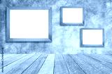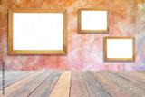 Orange wall and empty wood desk and Wooden frame .Blank space for text and images.