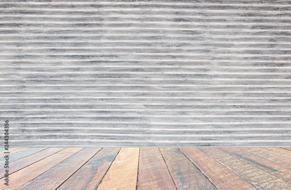 wall gray , vintage wall Textured background and empty wood desk .Blank space for text and images.